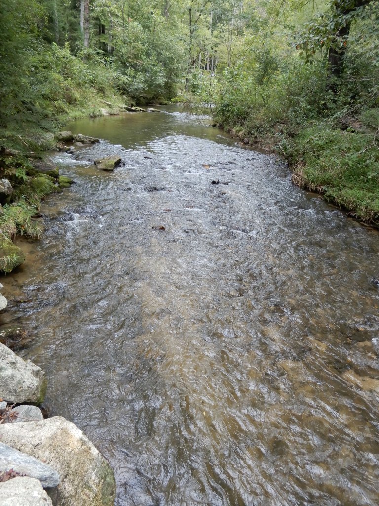 We tried to drive back to Cedar Stone Campground, but the back entrance was closed. We learned from a ranger that the park had become too crowded and Covid regulations forced them to close all entrances and exits except one. So we drove all the way back through the park to the front entrance. Sure enough, the police were directing traffic, allowing one car in whenever one car left the park. There was a line of several dozen cars waiting to get in. We wound our way through the country back to our campground, thank Garmin. It took us down this one narrow gravel road, but it was only a half-mile. We set back up at our site and spent the rest of the day there. We walked around the campground along the creek.