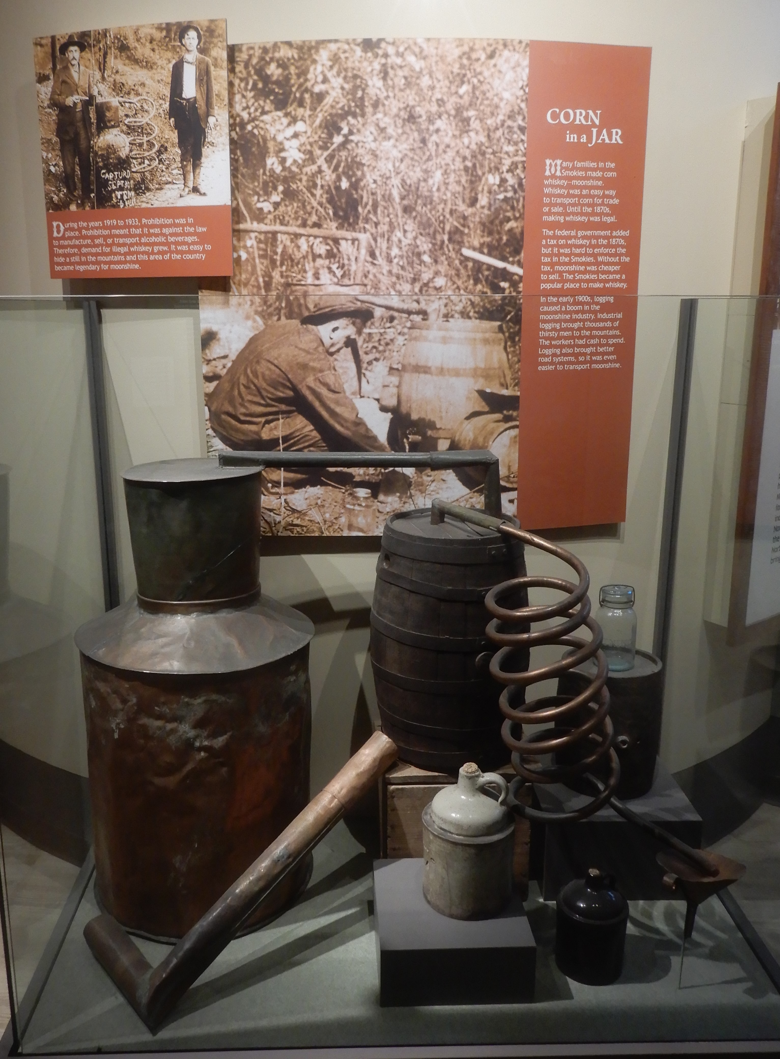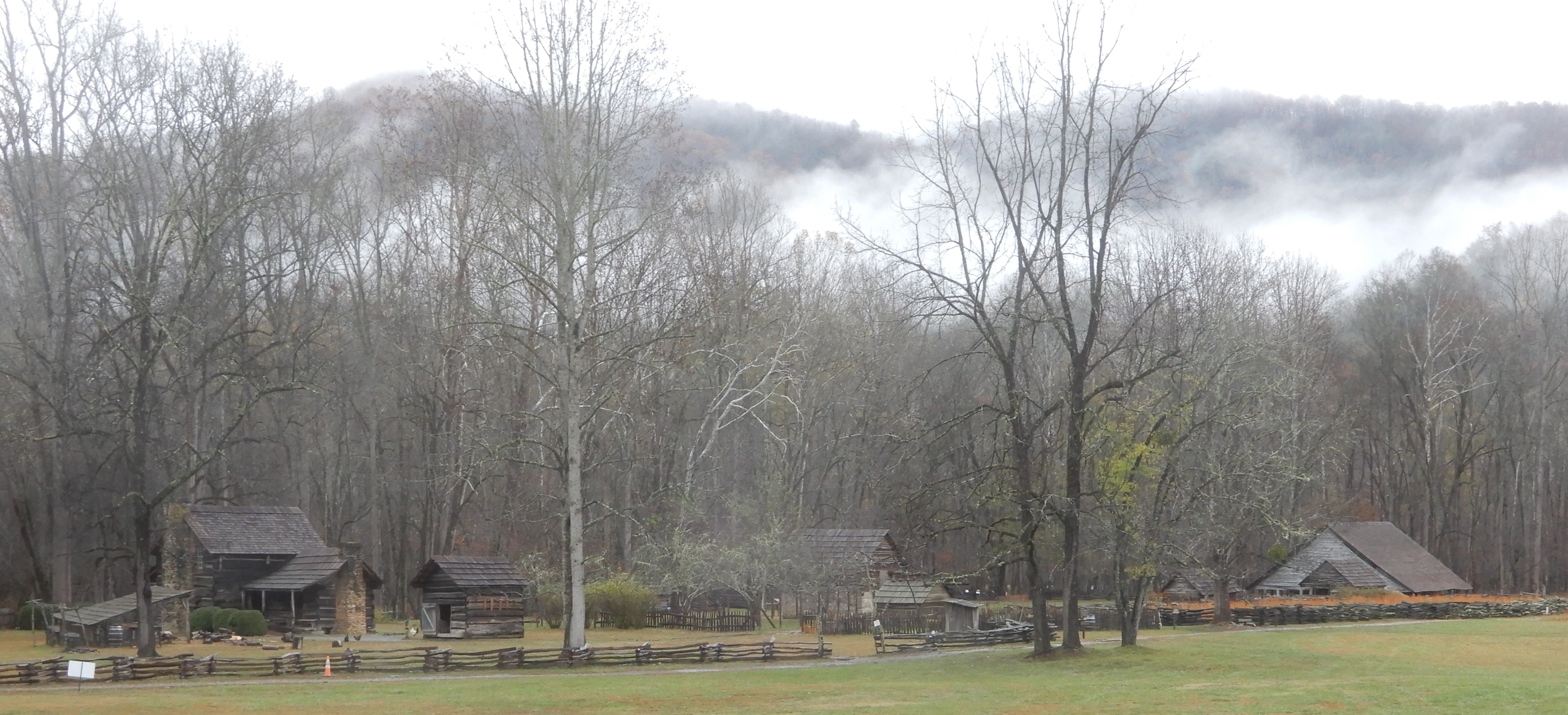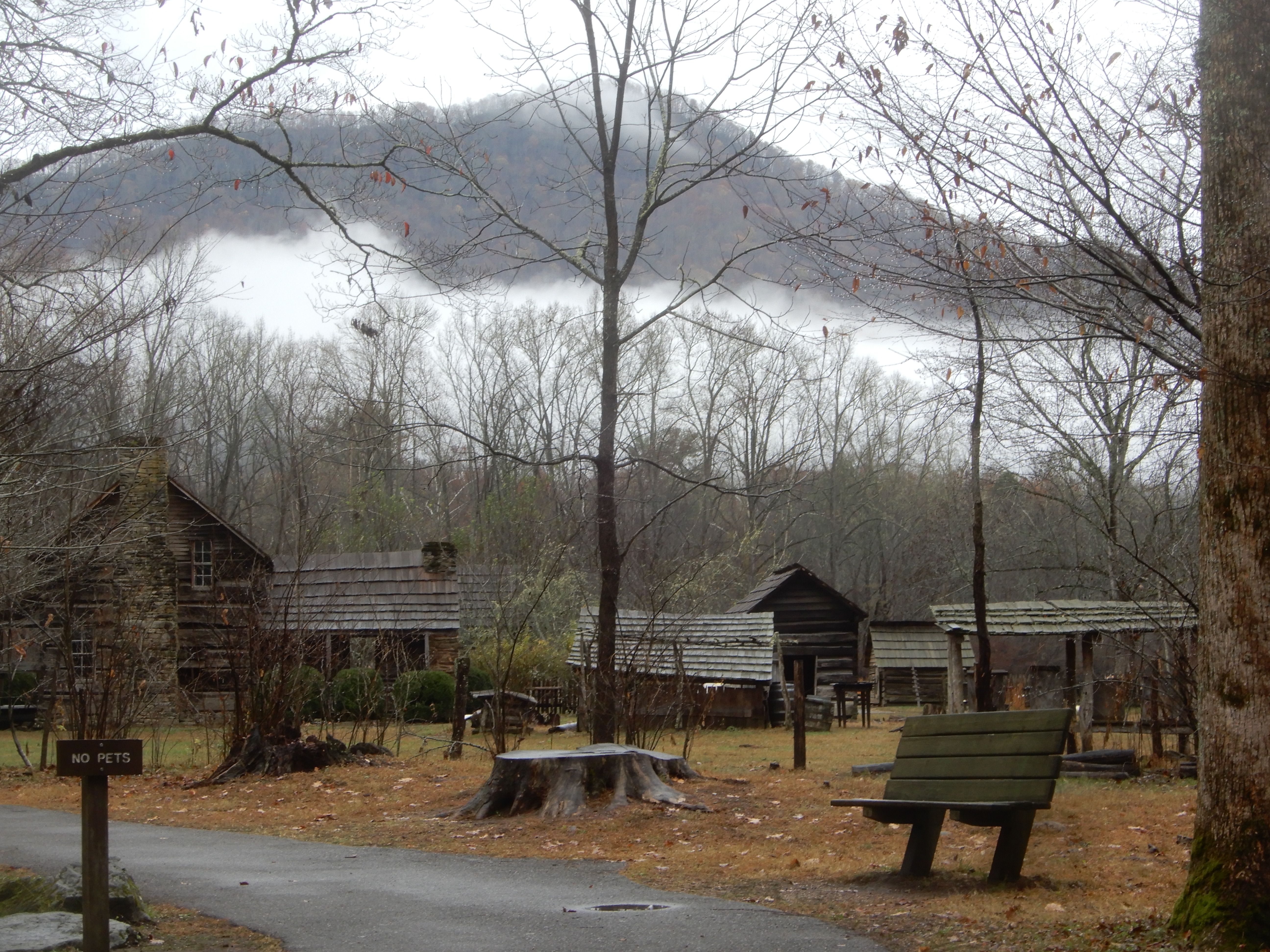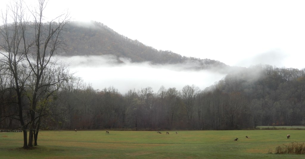 Reaching the south terminus of the Blue Ridge Parkway, which ended inside the Smoky Mountains National Park, we turned onto 441 and drove to the Oconaluftee Visitor Center. We ate lunch in the parking lot, then went in for some information.