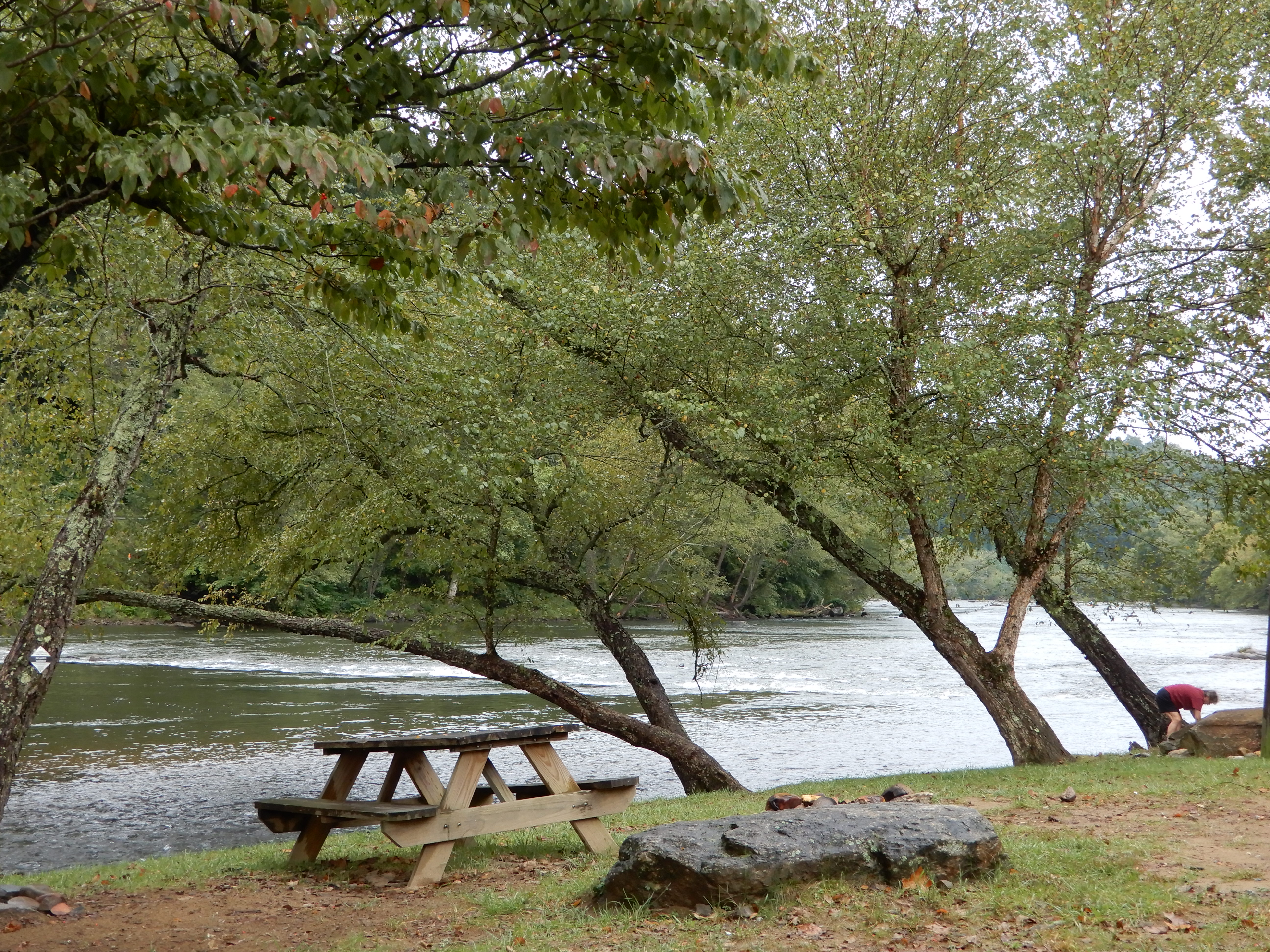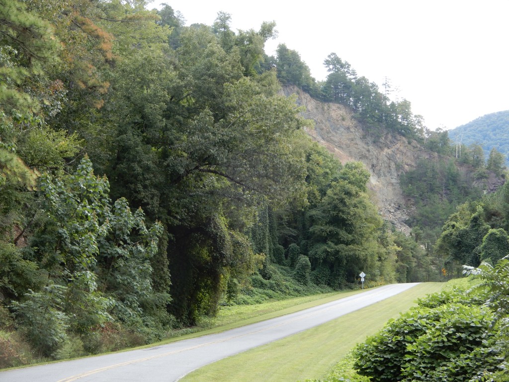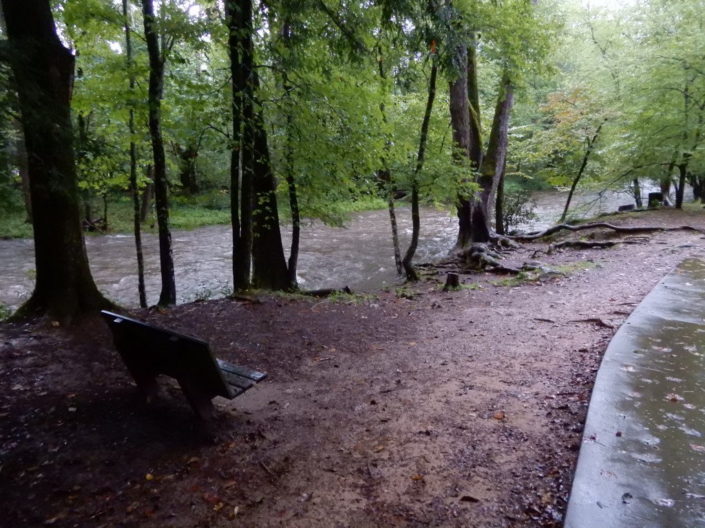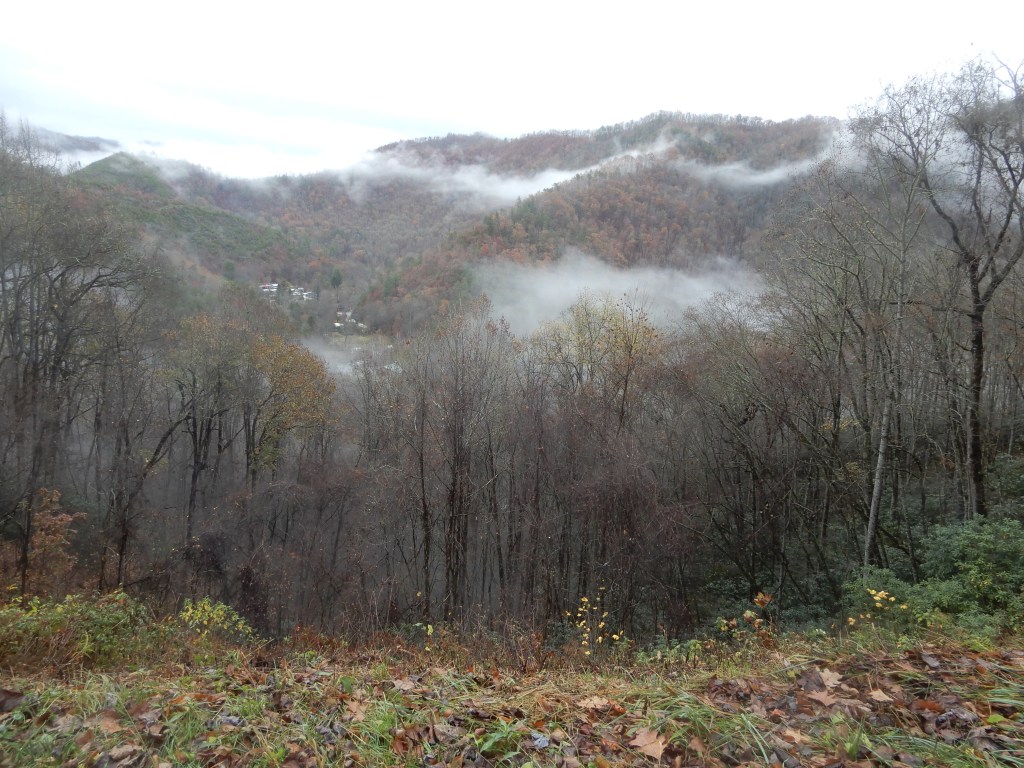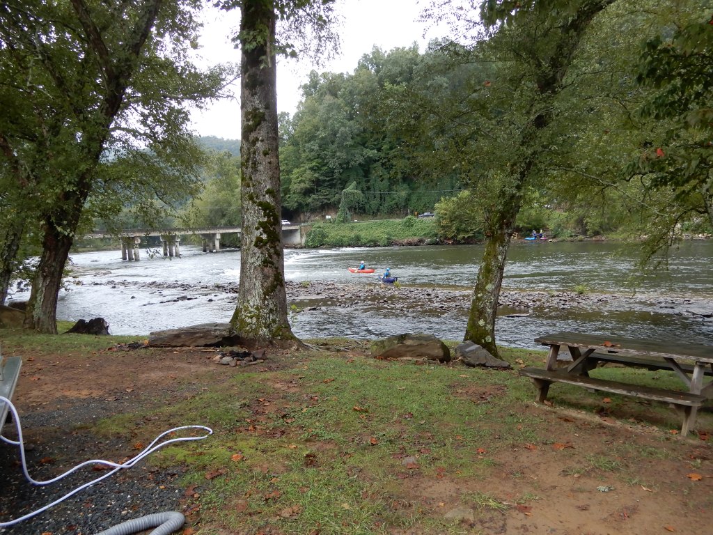 We drove out of the park, then headed east from Fontana to Bryson City. We got a site for 2 nights at Grumpy Bear Campground outside of Bryson City since it was supposed to rain for 2 days.