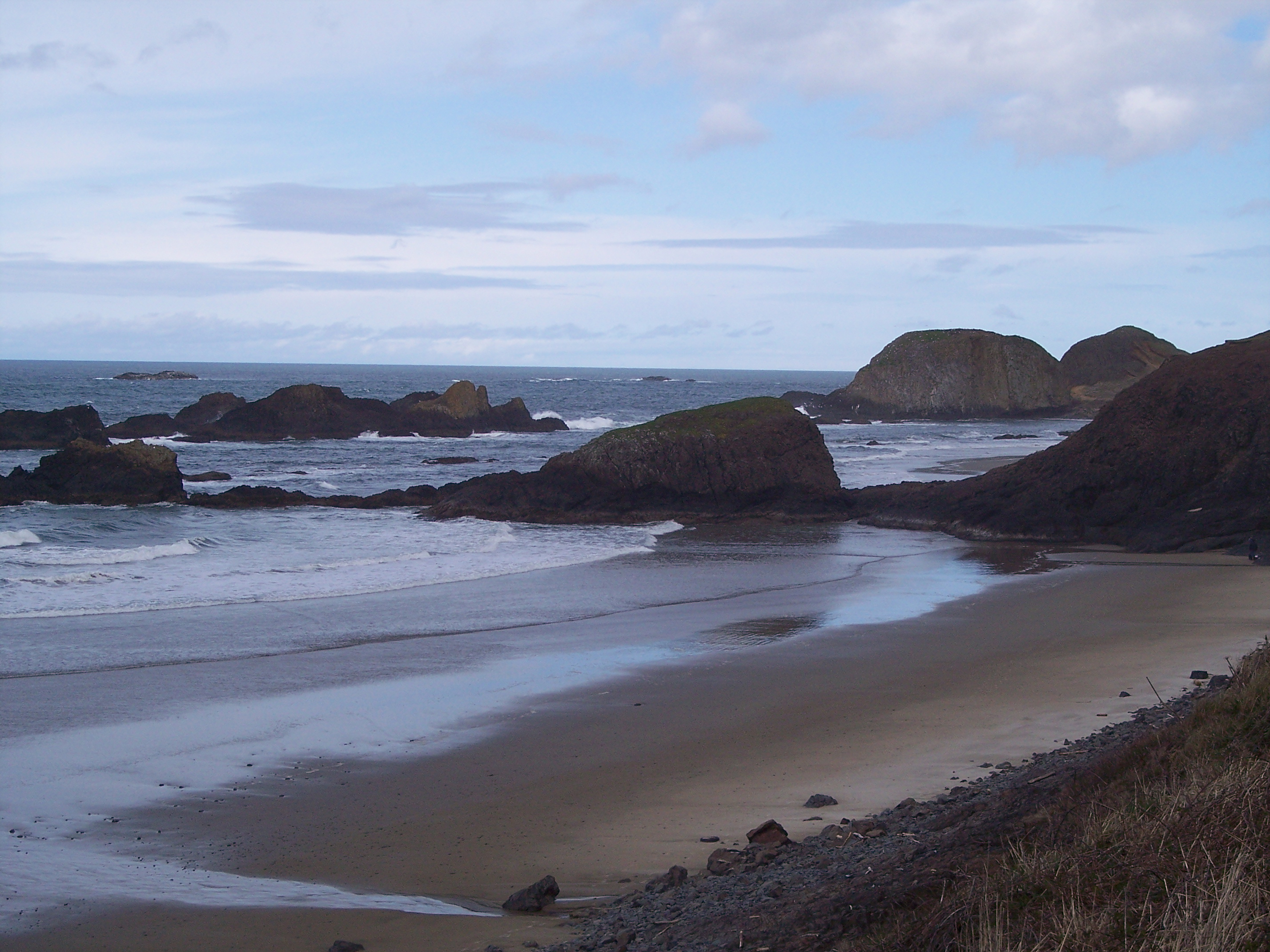 Marie looks out the window at the passing scenery. The bus ascends a narrow mountain road winding through tall pines that closely line the shoulders, the rocky hillsides strewn with fallen rocks. Brightly-colored wildflowers adorn the newly-sprouted greenery, as a multitude of streams from recent spring rains cascade down.